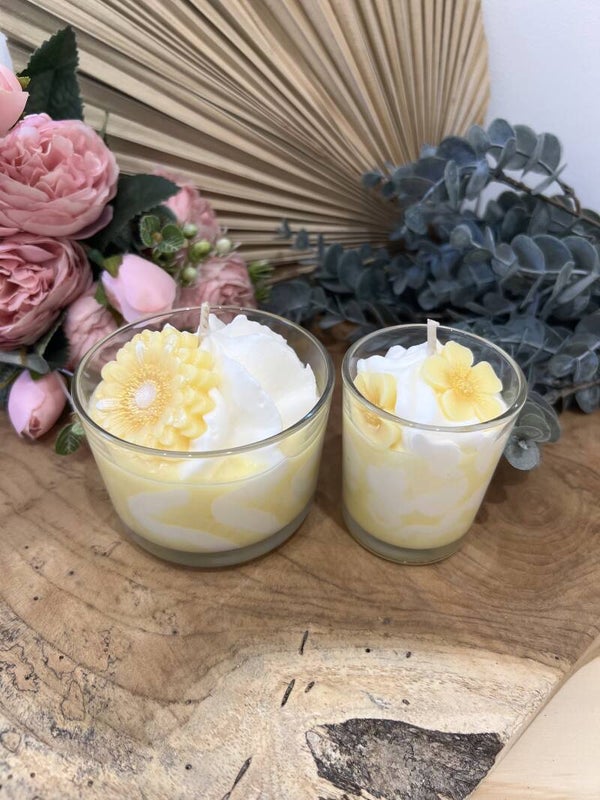 Bougie fait main dans la Drôme, à base de cire végétale naturelle de soja et d'huile d'olive ainsi que de parfum de Grasse certifié sans CMR (Cancérogène, Mutagène et Reprotoxique), sans phtalates et sans matières animales.